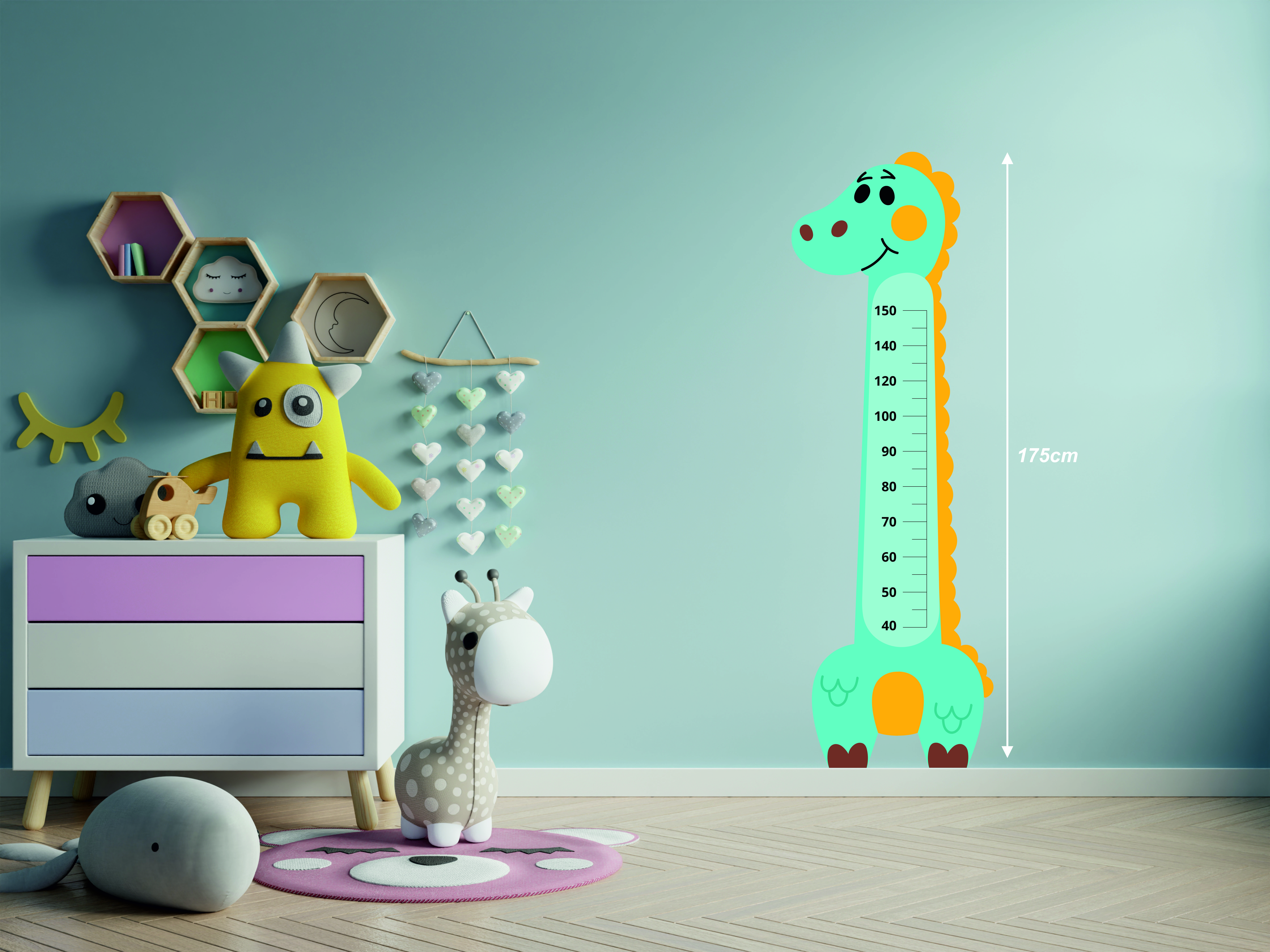 Çocuk odaları için hazırladığımız Sevimli Dinazor Boy Cetveli